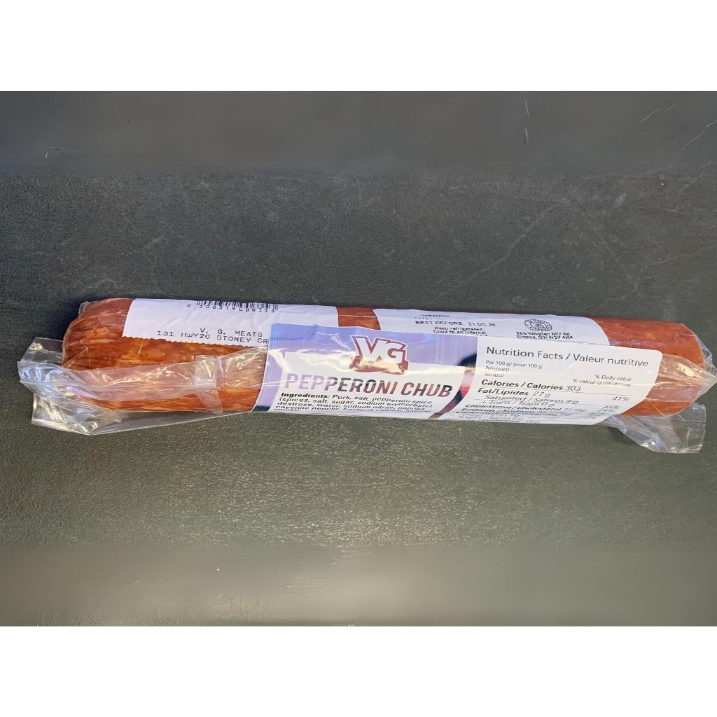 If you're making pizza, don't forget to pick up a delicious local pepperoni chub! Rowe Farms is proud to carry this exceptional local product that's made by VG Meats (part of the Harvest to Gather family of companies). VG Meats is a family-owned and operated business based in Norfolk County. A multigenerational operation that's currently run by four brothers, VG Meats produces high quality Ontario beef, poultry and pork products that are raised using holistic management to achieve regenerative outcomes. VG also offers delicious prepared meals, frozen goods and more. SKU: 51501